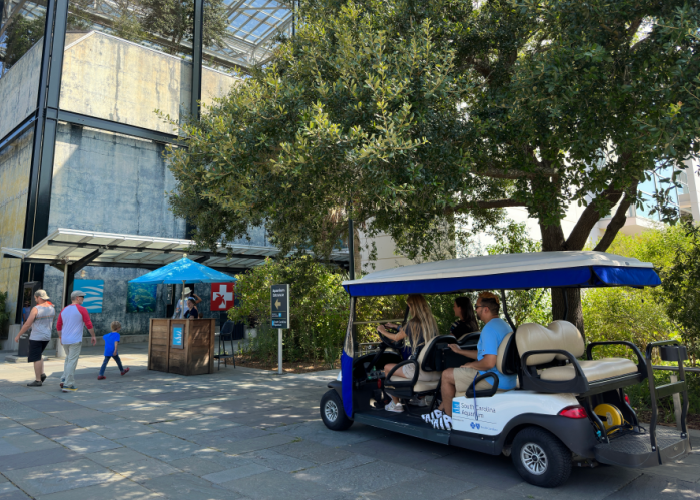 Thanks to a generous contribution from Blue Cross Blue Shield of South Carolina, an accessibility vehicle is available for Aquarium guests needing transport from the garage to our entrance. To arrange transportation, please call (843) 579-8507 after you have parked. While we make every effort to offer this service, we cannot guarantee transport will be available during your visit.