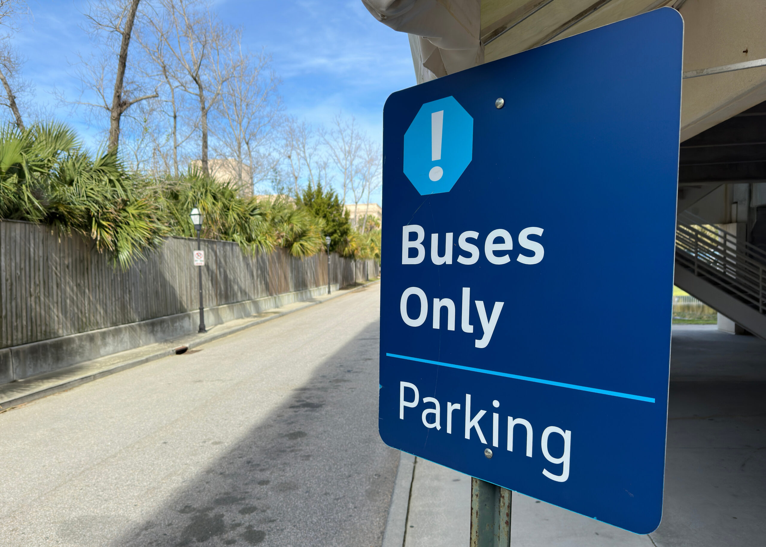 Buses and oversized vehicles may park in the Bus Lane behind the Aquarium Garage. Please note: All oversized vehicles other than school buses must have a valid permit from the City of Charleston to park here. Learn more about permits here.